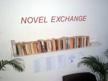 Novel Exchange (in collaboration with Australian artistAnne Graham). Advertisements were placed in the local media (newspapers and radio) announcing a “novel exchange” that took place in the Gallery of the Newcastle University School of Fine Arts and the Newcastle Regional Art Gallery. The “top 100 novels from the past 100 years” a very gendered, American and Euro-centric collection was arranged on a long book shelf attached to the gallery wall. Adjacent to the shelf was coffee table upon which were placed a tea service and biscuits provided for individuals who brought their novels to exchange with those they chose to replace from the collection. The space also provided visitors with a comfortable arm chair in which to relax and read among some tropical plants and in the company of two Australian budgerigars in a cage.